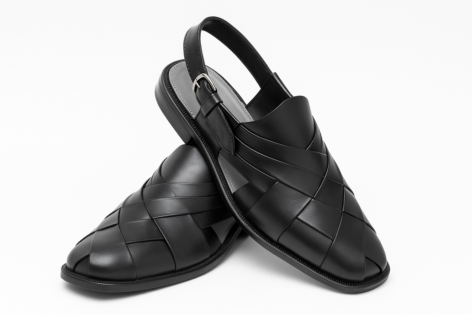 - Traditional Peshawari silhouette with cross-strap design